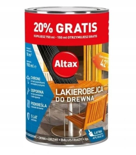 ALTAX Lakierobejca do Drewna 0,75L + 20% Gratis