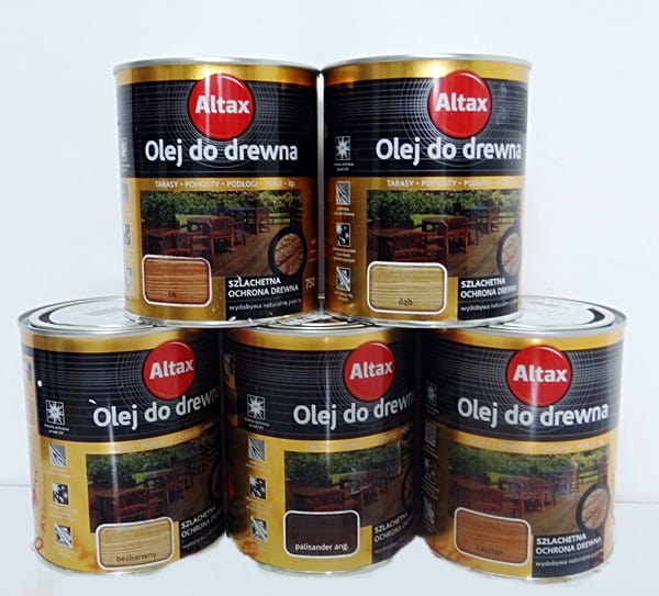 Altax Olej dokładnie wymieszać przed użyciem oraz okresowo mieszać podczas stosowania. Olej nanosimy za pomocą szmatki, bawełnianego "mopa", tamponu lub pędzla wcierając go wzdłuż słojów. Podczas nakładania oleju dokładamy małe porcje preparatu, tak długo, jak długo olej będzie wnikał w drewno. Gdy drewno przestanie go chłonąć, a na powierzchni zaczną pojawiać się tzw. "mazy" należy zebrać nadmiar niewchłoniętego oleju czystą szmatką i całość pozostawić do wyschnięcia. Jeżeli chcemy, możemy po 24 h wypolerować dodatkowo całość szmatką zwilżoną w oleju. Pamiętajmy jednak podczas tego zabiegu, że olej, to produkt nie tworzący powłoki - olejem nie malujemy drewna, tylko je nasączamy.