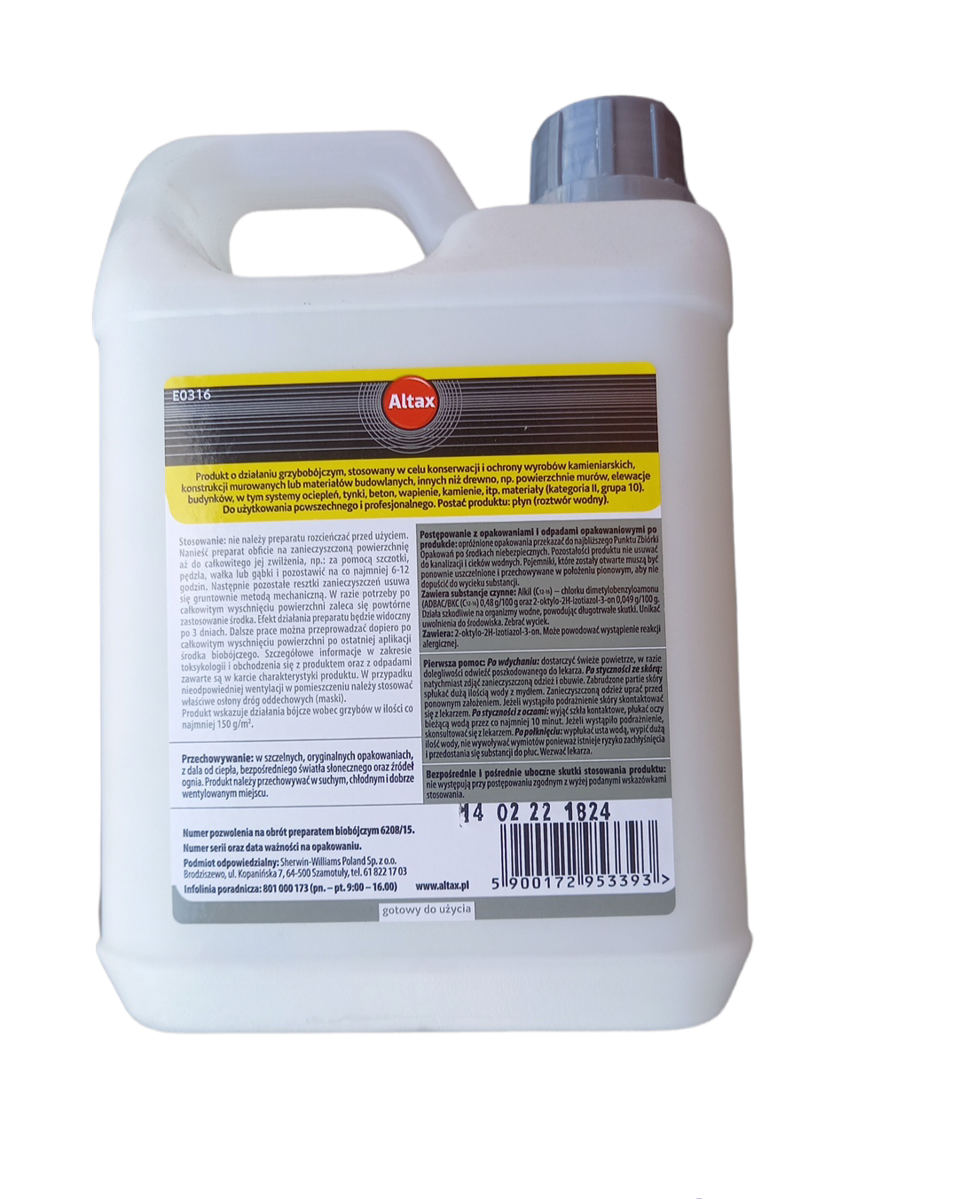 ALTAX ŚRODEK GRZYBOBÓJCZY NA PLEŚŃ GRZYBY WILGOĆ 1L