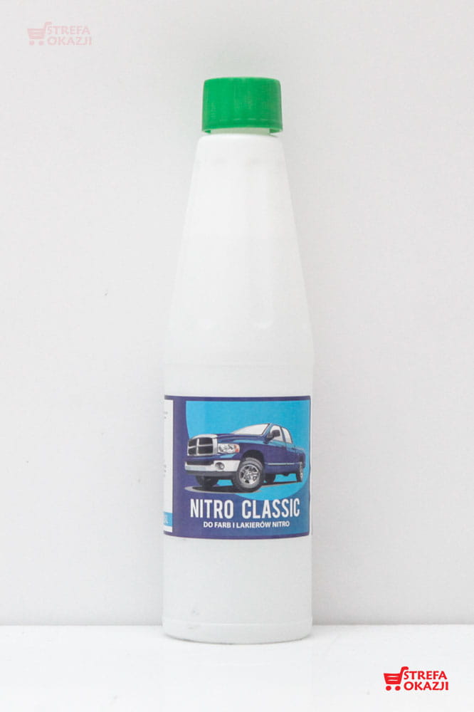 Rozpuszczalnik przeznaczony do rozcieńczania farb i lakierów nitro oraz do przemywania narzędzi, pędzli itp. Jeżeli rozpuszczalnik jest stosowany na nowy wyrób, należy przeprowadzić próbę jego działania na małej, niewidocznej powierzchni. Opakowanie 0,5L