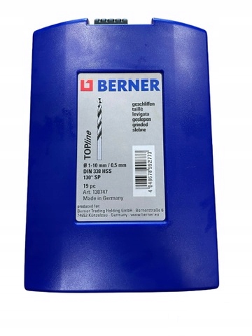 BERNER WIERTŁA DIN 338 HSS SREBRNE KPL 19SZT 1-10