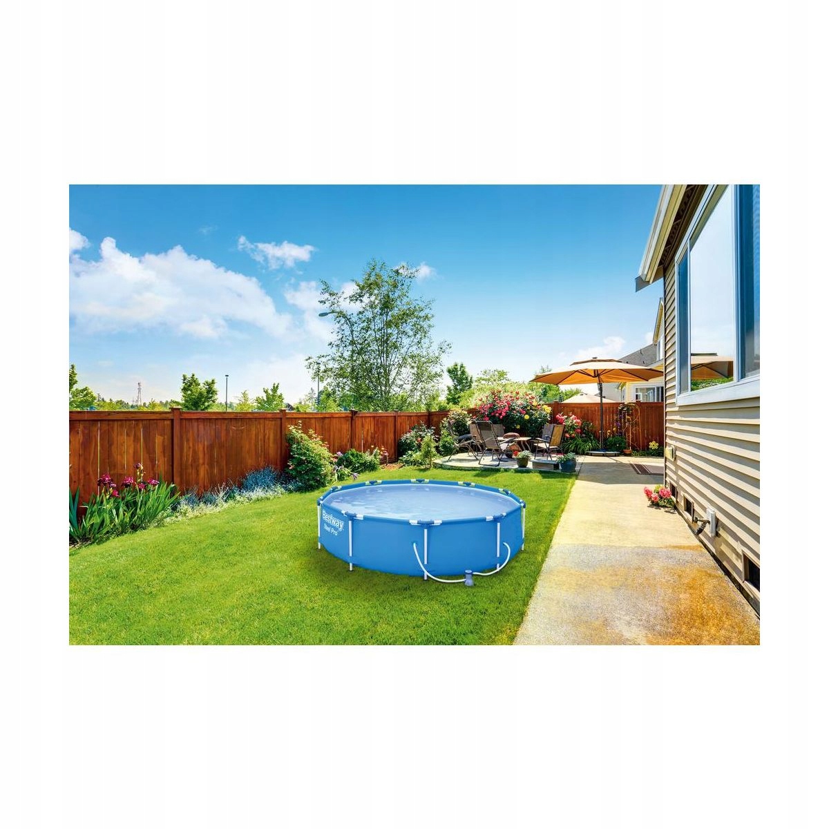 - Akcesoria w komplecie: pompa filtrująca, filtr do pompy, łatka naprawcza