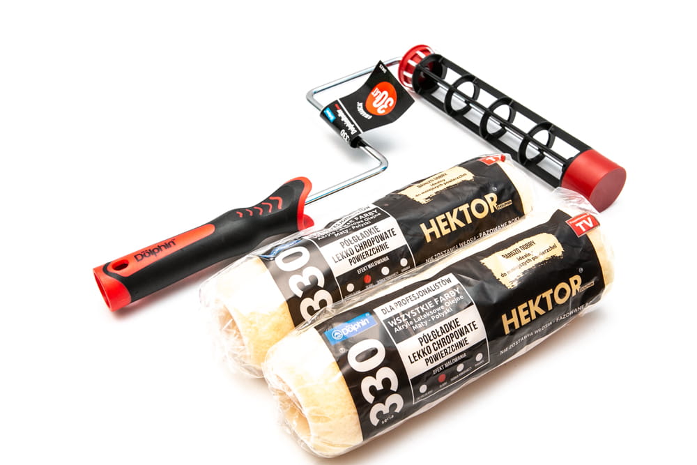Blue Dolphin 330 HEKTOR to wałek malarski wykonany z innowacyjnego materiału, pokryty poliestrem, który lepiej chłonie i oddaje farbę, a przy tym nie zostawia włosia. Jego zaletą jest też nieskomplikowane mocowanie. Nawet przy wielokrotnym użyciu zachowuje swoją początkową puszystość.