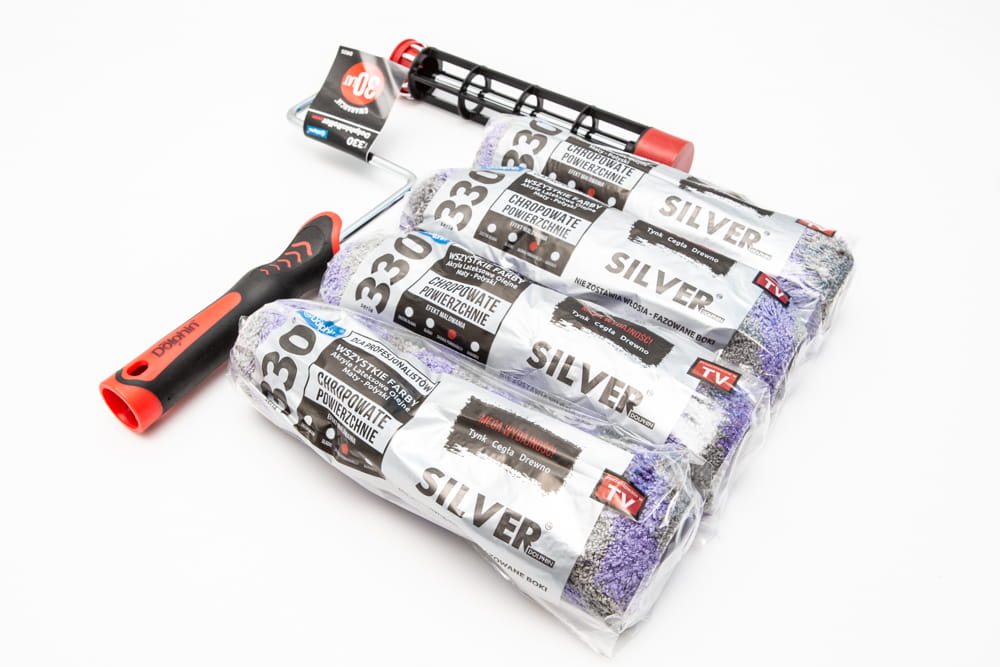 Blue Dolphin 330 to wyjątkowo trwały łożyskowany i nylonowy cylinder z zatrzaskiem na wałek, który jest na stałe zamontowany na wytrzymałym, chromowanym profilu wyposażony w ergonomiczną rączkę. Dobierając odpowiedni wałek z serii Blue Dolphin 330 znacznie poprawisz wydajności i poprawisz jakość wykonywanej pracy. Wałki malarskie z tej serii wykonane są z innowacyjnego materiału, który lepiej chłonie i oddaje farbę, a przy tym nie zostawia włosia. Jego zaletą jest też nieskomplikowane mocowanie. Nawet przy wielokrotnym użyciu zachowują swoją początkową puszystość. Dzięki zastosowaniu skosów na końcach wałka, wyeliminowane jest nawarstwianie się farby na krawędziach.