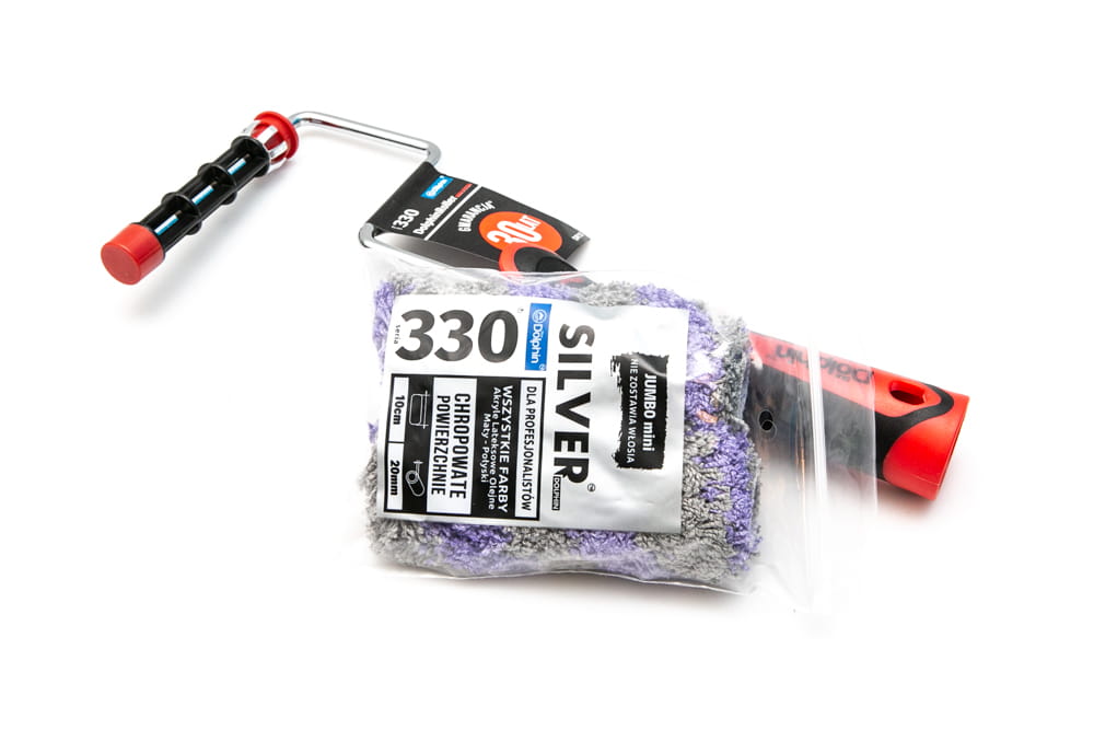 Jest to wałek malarski wykonany z innowacyjnego materiału, który lepiej chłonie i oddaje farbę, a przy tym nie zostawia włosia. Jego zaletą jest też nieskomplikowane mocowanie. Nawet przy wielokrotnym użyciu zachowuje swoją początkową puszystość. Blue Dolphin 330 JUMBO mini jest przeznaczony do malowania farbami akrylowymi, lateksowymi i olejnymi ( mat i połysk ) po powierzchniach chropowatych.