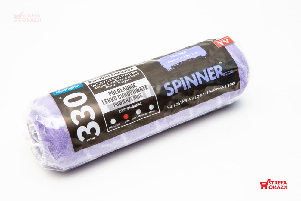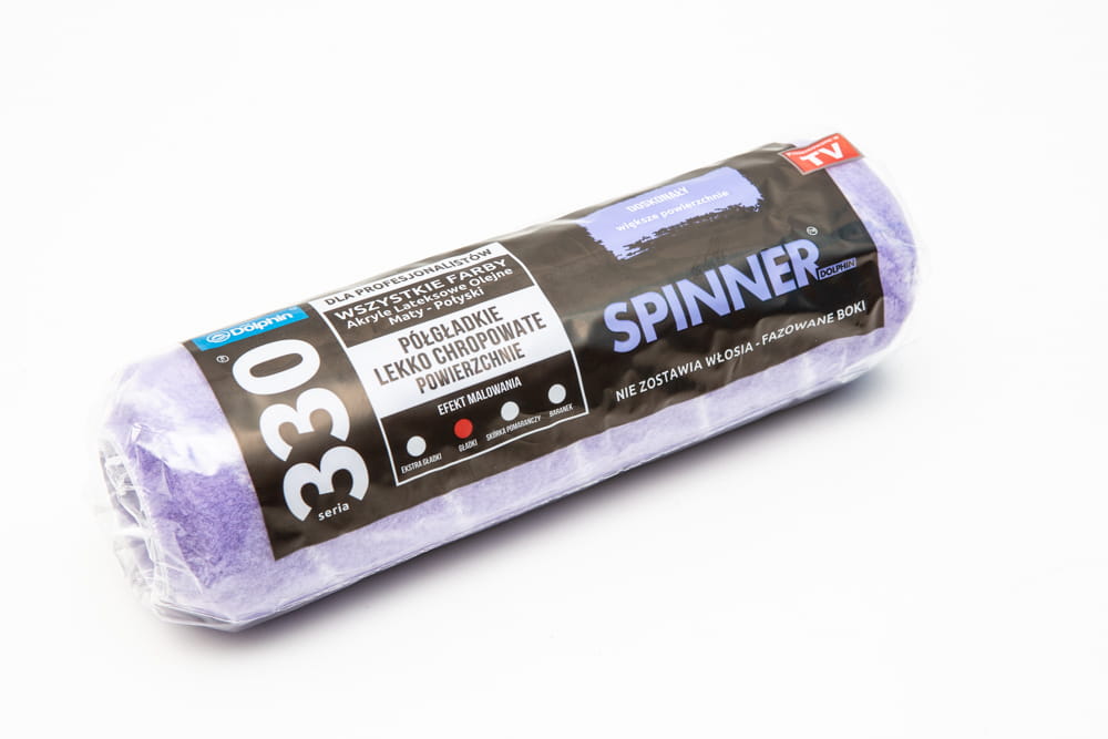 Blue Dolphin 330 SPINNER to wałek malarski wykonany z innowacyjnego materiału, pokryty poliestrem, który lepiej chłonie i oddaje farbę, a przy tym nie zostawia włosia. Jego zaletą jest też nieskomplikowane mocowanie. Nawet przy wielokrotnym użyciu zachowuje swoją początkową puszystość. Dzięki zastosowaniu skosów na końcach wałka, wyeliminowane jest nawarstwianie się farby na krawędziach. Blue Dolphin 330 SPINNER to wyjątkowo trwały, łożyskowany i nylonowy cylinder z zatrzaskiem na wałek, który jest n a stałe zamontowany na wytrzymałym, chromowanym profilu wyposażony w ergonomiczną rączkę. Jest on przeznaczony do malowania wszystkimi rodzajami farb po większych powierzchniach gładkich. Wałek ten maluje dając w efekcie wyjątkowo gładką powierzchnię.