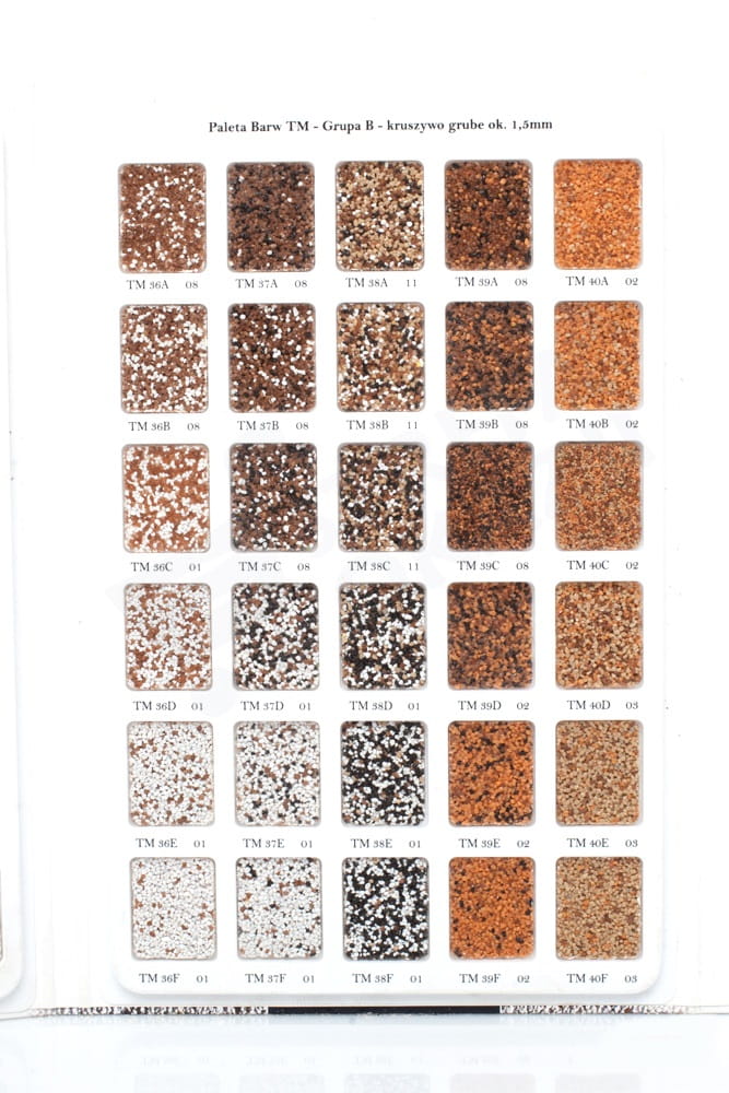 JAK DOBRAĆ GRUNT ? Kupując np. tynk mozaikowy w kolorze TM26A konieczny jest grunt bolix op kolor nr 12 o czym informuje cyfra obok nazwy tynku.