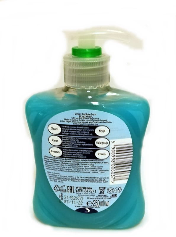 Antybakteryjne mydło w płynie Carex pielęgnuję dłonie i wspiera naturalną barierę ochronną Twojej skóry, zapobiegając rozprzestrzenianiu się bakterii. Specjalnie dobrane, delikatne składniki myjące oraz naturalny składnik antybakteryjny skutecznie zadbają o codzienną higienę Twoich rąk.