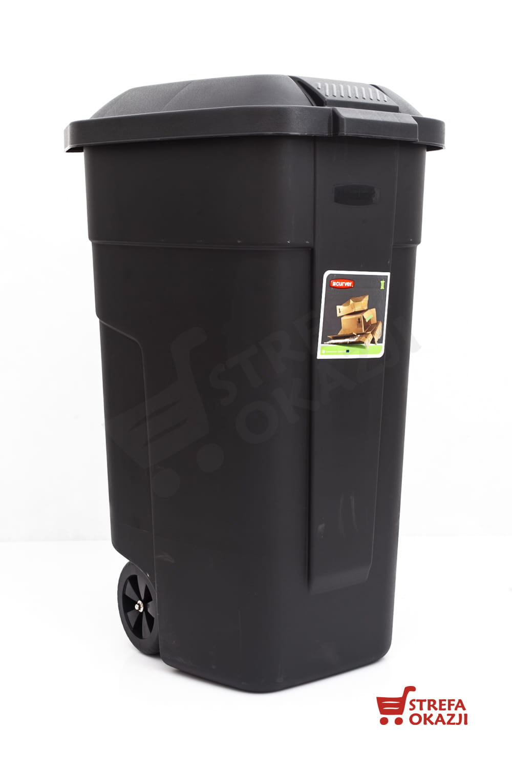 Pojemnik na odpady przydatny na działce, przy domu, w firmie. Wykonany z wysokogatunkowego plastiku, jest wytrzymały na uszkodzenia mechaniczne czy spowodowane czynnikami atmosferycznymi. Został wyposażony w kółka oraz przymocowany z boku uchwyt, co pozwala na jego łatwe przemieszczanie. Zbiornik jest otwierany ręcznie przy pomocy pokrywy, na środku której znajduje się uchwyt. Jej konstrukcja pozostawia zawartość kosza stale zamkniętą i niewidoczną. Pojemnik z matowego tworzywa w kolorze czarnym. Kółka i uchwyt ułatwiają przesuwanie i manewrowość.