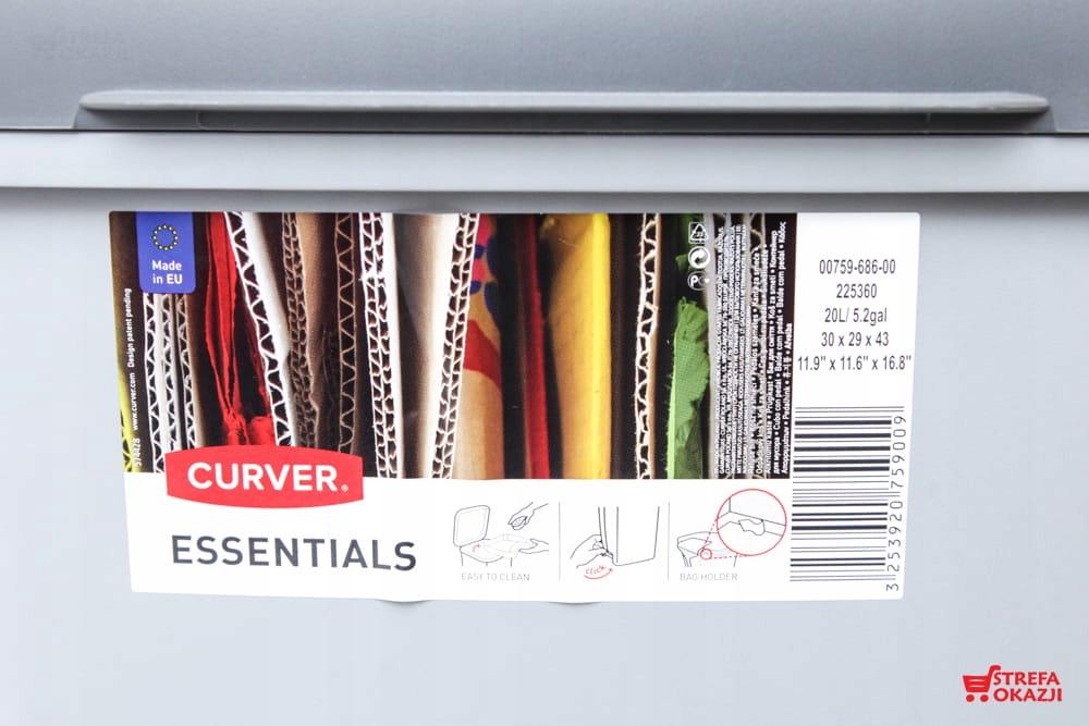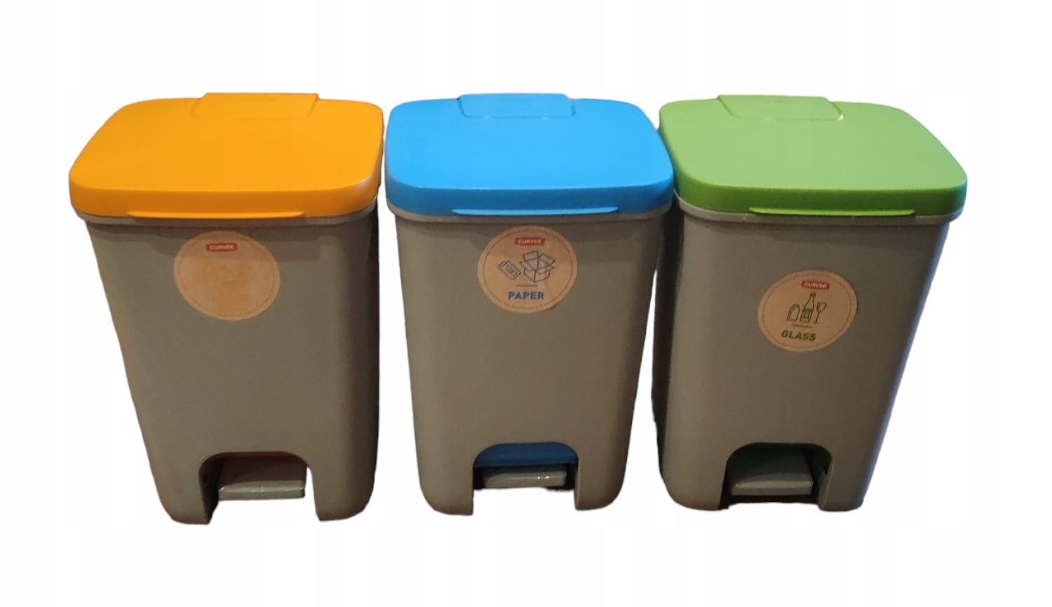 CURVER KOSZ NA ŚMIECI ESSENTIALS 3X 20 L - ZESTAW 3 KOSZY SZARY / POKRYWA NIEBIESKA, ZIELONA, ŻÓŁTA