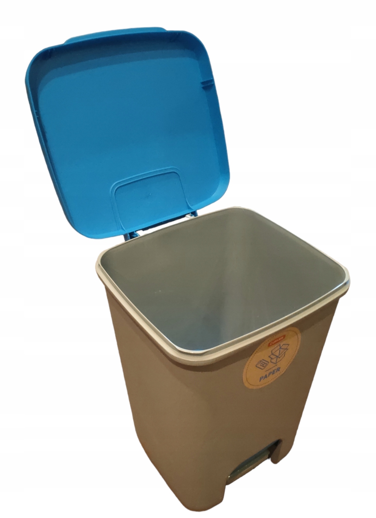 Funkcjonalny kosz na śmieci, ułatwiający utrzymanie czystości w pomieszczeniu, w którym będzie używany. Doskonale sprawdzi się zarówno w kuchni, łazience, jak i w biurze. Kosz wykonany jest z wysokiej jakości tworzywa sztucznego. Konstrukcja pokrywy pozostawia zawartość kosza stale zamkniętą i niewidoczną. Zbiornik na śmieci otwiera się nogą za pomocą specjalnego pedału, dzięki czemu łatwiej jest zachować higienę rąk.