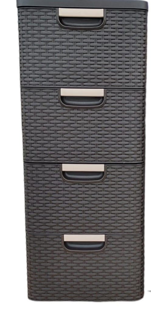 Wysoka i wąska komoda zajmuje niewiele przestrzeni i pozwoli skutecznie posegregować wszelkie bibeloty, które chcemy mieć pod ręką. Wykonana została z mocnego sztucznego tworzywa odpornego na wilgoć i łatwego w czyszczeniu. Każda szuflada ma pojemność 14 litrów i można ją bezproblemowo wysunąć za pomocą poręcznego uchwytu.