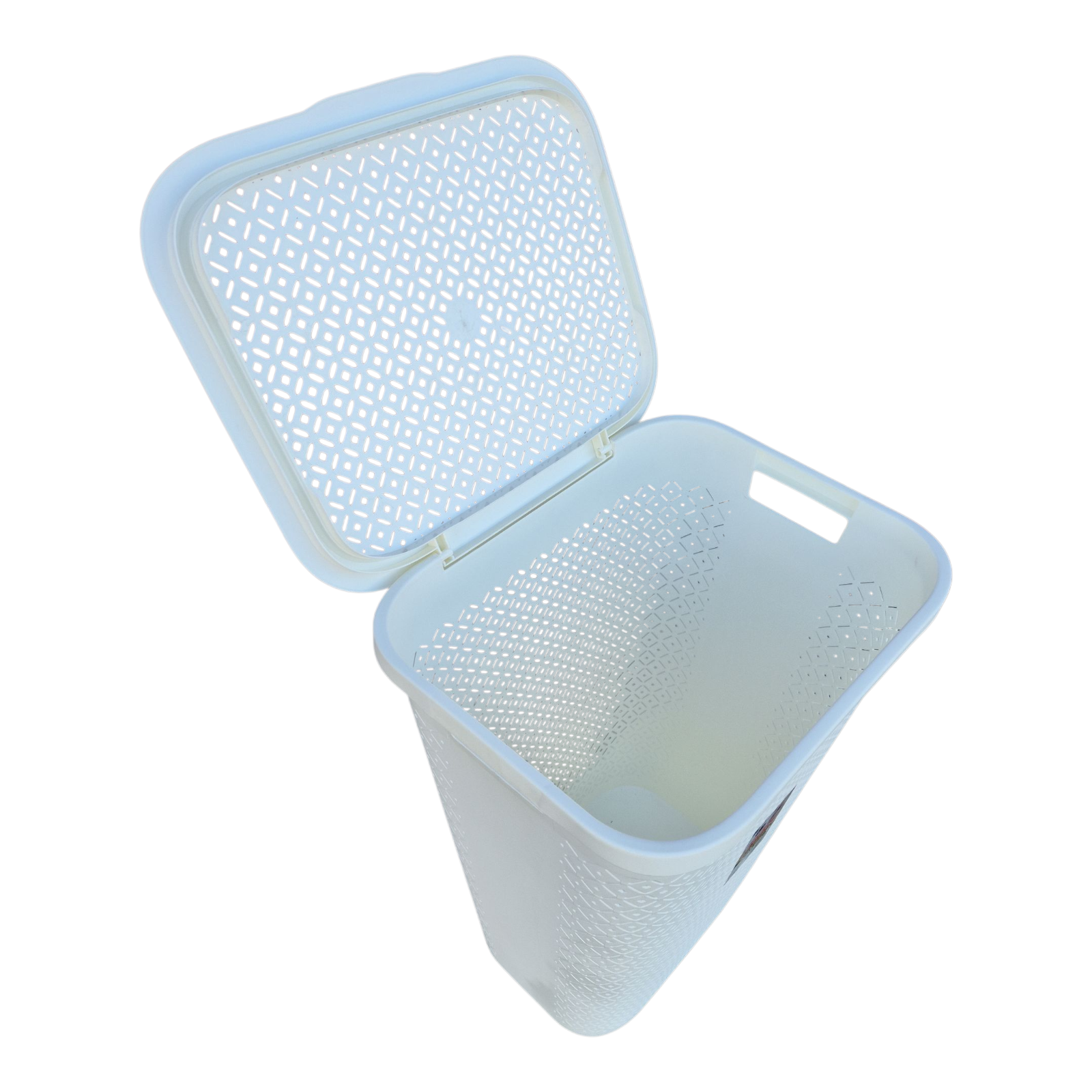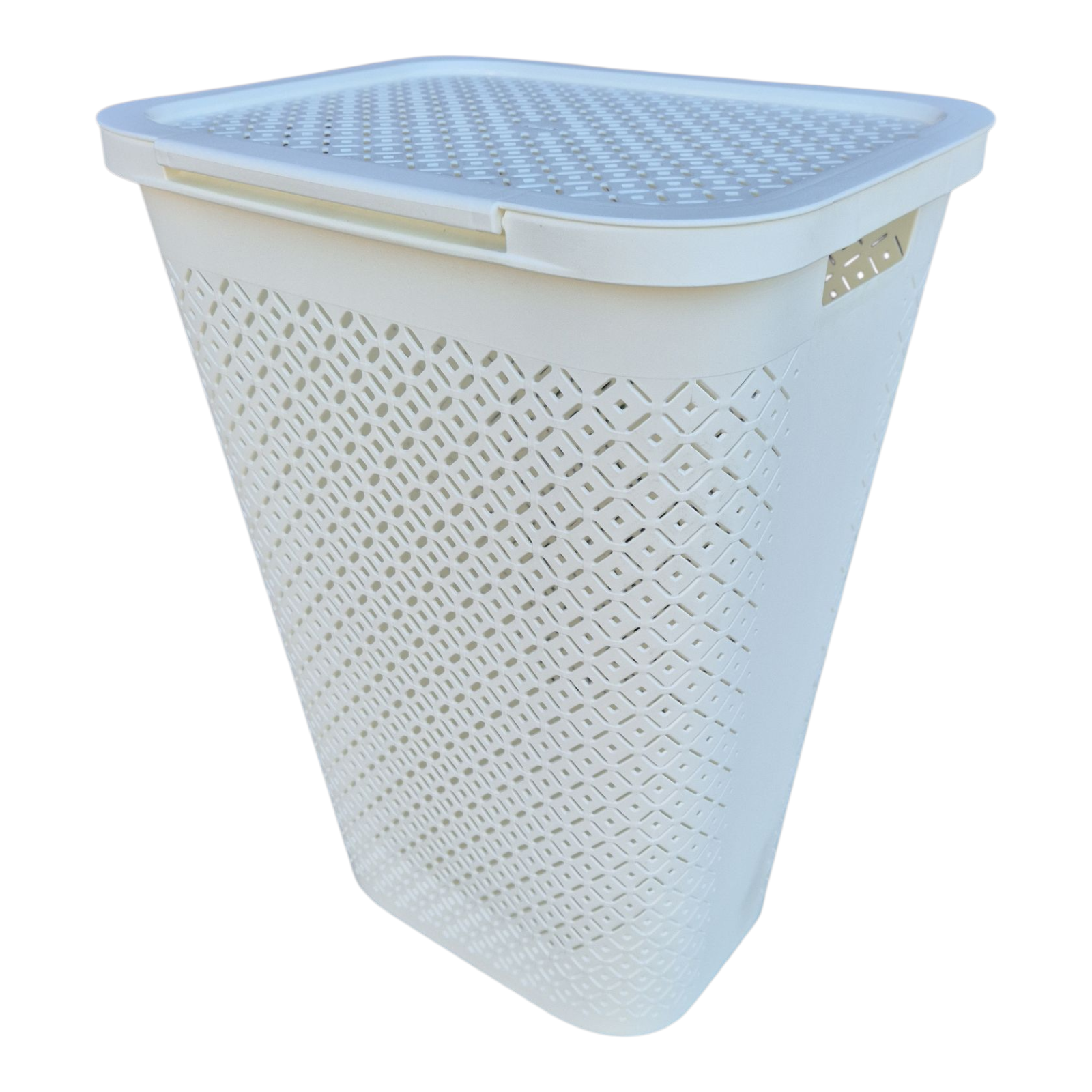 Gromadź brudne pranie w koszu na bieliznę Curver Terrazzo z ozdobnym otwartym wzorem zapewniającym optymalną cyrkulację powietrza.