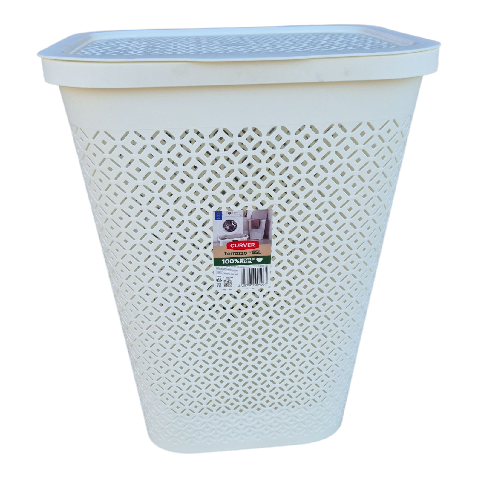 CURVER TERAZZO KOSZ NA PRANIE BIELIZNĘ 55l BIAŁY KREMOWY