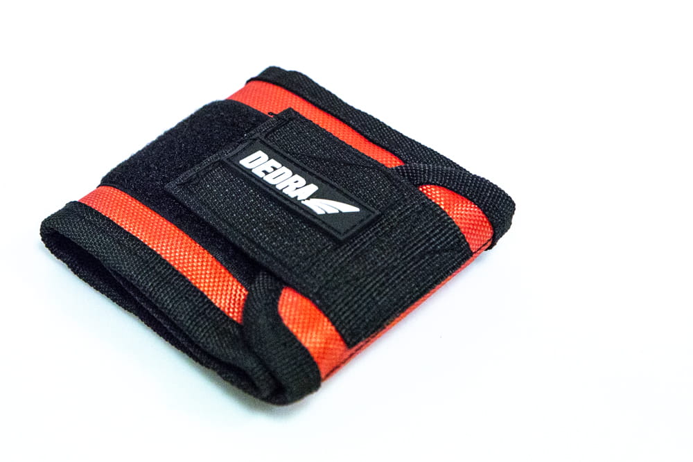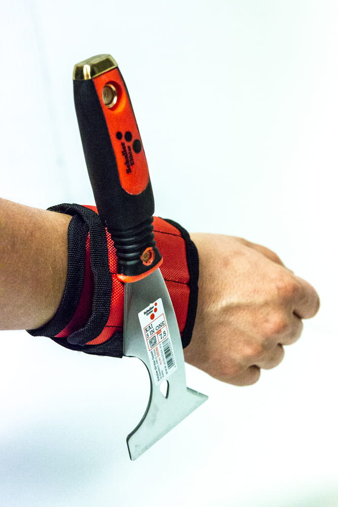 Wszyte w opaskę 3 silne magnesy neodymowe N38 przytrzymują drobne metalowe przedmioty takie jak bity, śruby, gwoździe, itp. w bezpośrednim zasięgu ręki