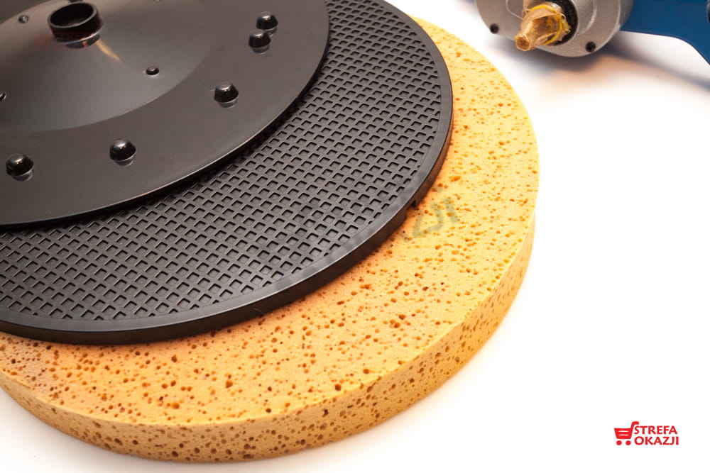 dysk do mocowania tarcz roboczych, tarcza gąbkowa do zacierania wstępnego oraz wykańczającego, tarcza plastikowa siatkowa do zacierania wstępnego, instrukcja obsługi, karta gwarancyjna