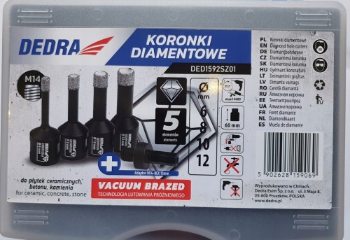 DEDRA ZESTAW OTWORNIC DIAMENTOWYCH 6,8,10,12MM HEX