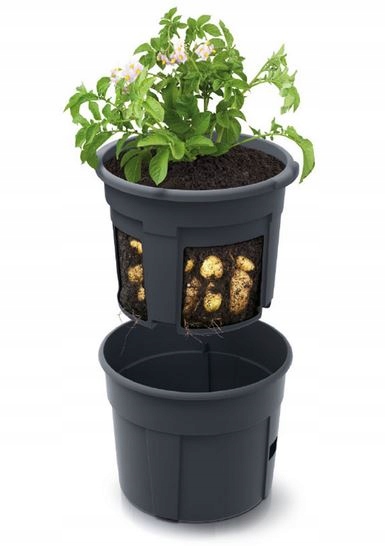 Doniczka, dzięki której uprawa ekologicznych ziemniaków na własnym balkonie jest możliwa. Specjalna konstrukcja umożliwia bezproblemowy zbiór warzyw.
