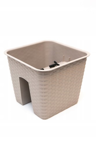 Prostokątna skrzynka do montażu na poręczach i balustradach. Zajmuje miejsce po obu stronach barierki, dlatego robi wrażenie oglądana zarówno z zewnątrz, jak i ze środka mieszkania. Z egzotycznej kolekcji RATOLLA o fakturze wiernie imitującej plecionkę rattanową.