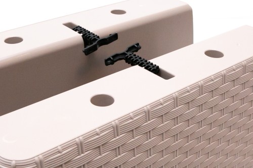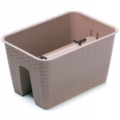 Prostokątna skrzynka do montażu na poręczach i balustradach. Zajmuje miejsce po obu stronach barierki, dlatego robi wrażenie oglądana zarówno z zewnątrz, jak i ze środka mieszkania. Z egzotycznej kolekcji RATOLLA o fakturze wiernie imitującej plecionkę rattanową.