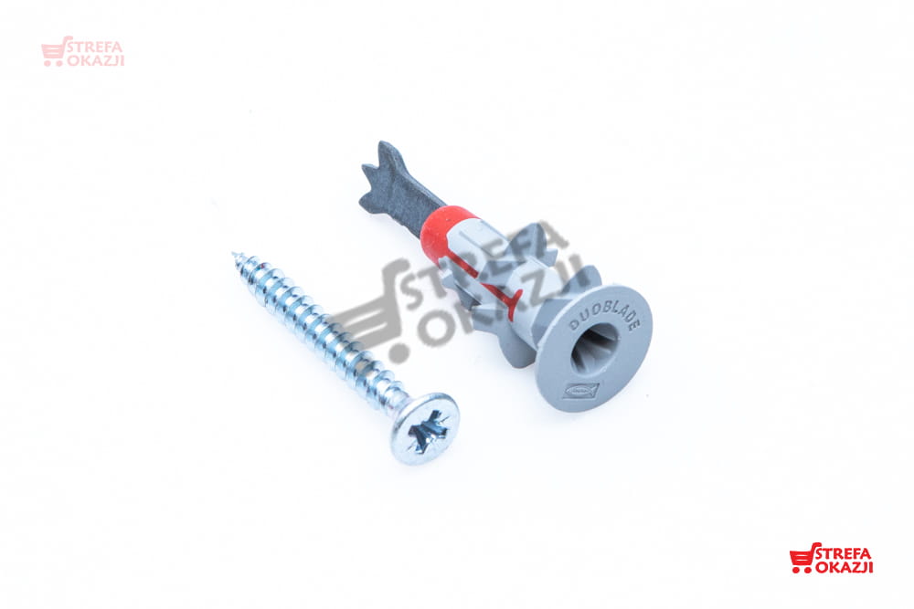 Samowiercąca wtyczka do płyt gipsowo-kartonowych dla łatwego i szybkiego montażuSamowiercące kołki do łatwego i szybkiego montażu w płytach gipsowo-kartonowychKońcówka centrująca do precyzyjnego zamocowania kołkaWspólny uchwyt narzędziowy Phillips (PZ 2) dla łatwej instalacjiOptymalne trzymanie dzięki dopasowanej śrubie do płyty wiórowej.Innowacyjny produkt Fischer DUO-Line z inteligentnymi kombinacjami zapewniającymi większą moc.Samowiercący fischer DUOBLADE umożliwia szybki i łatwy montaż w płytach gipsowo-kartonowych i płytach gipsowo-kartonowych.Czarna metalowa końcówka gwarantuje prosty i bezpieczny montaż bez użycia kołków rozporowych. Wysoki moment obrotowy przy nakładaniu kołka zapewnia współczynnik Feelgood i optymalne uczucie siedzenia.Wspólny uchwyt narzędziowy Phillips (PZ 2) dla łatwej instalacji.Pudełko składane z 25 x DUOBLADE, 25 x śruba do płyty wiórowej 4,5 x 40 mm