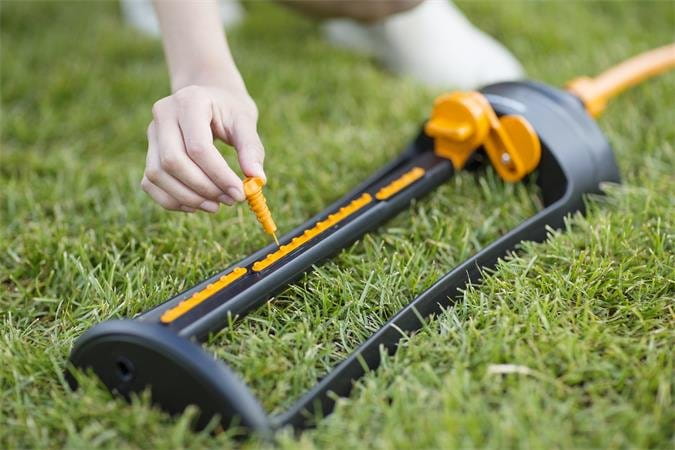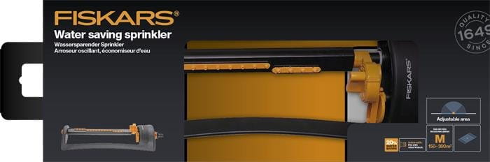 Fiskars zraszacz oszczędzający wodę idealnie nadaje się do podlewania prostokątnych obszarów w ogrodzie, szczególnie polecany jest do trawników. Zastosowanie technologii oszczędzającej wodę w zraszaczu Fiskars zmniejsza słup wody w pozycji środkowej i tym samym redukuje zużycie wody nawet o 20%. Ponadto zapewnia równomierne nawadnianie i zapobiega powstawaniu kałuż wokół zraszacza.