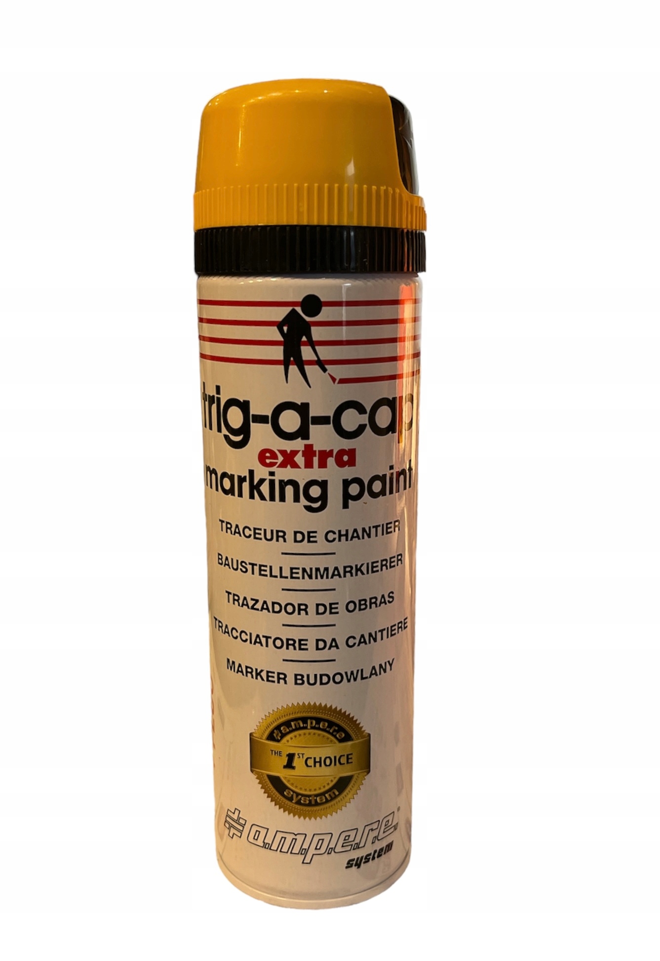 Farba przeznaczona do znakowania, sygnalizacji, oznaczeń topograficznych i prac budowlanych. Jest farbą na bazie rozpuszczalnika, posiada ergonomiczną i obrotową nakrętkę bezpieczeństwa. Dzięki TRIG-A-CAP EXTRA oznaczenia fluo są bardziej widoczne, długotrwałe, szybkoschnące i precyzyjne. Bez freonu, ołowiu i kadmu.