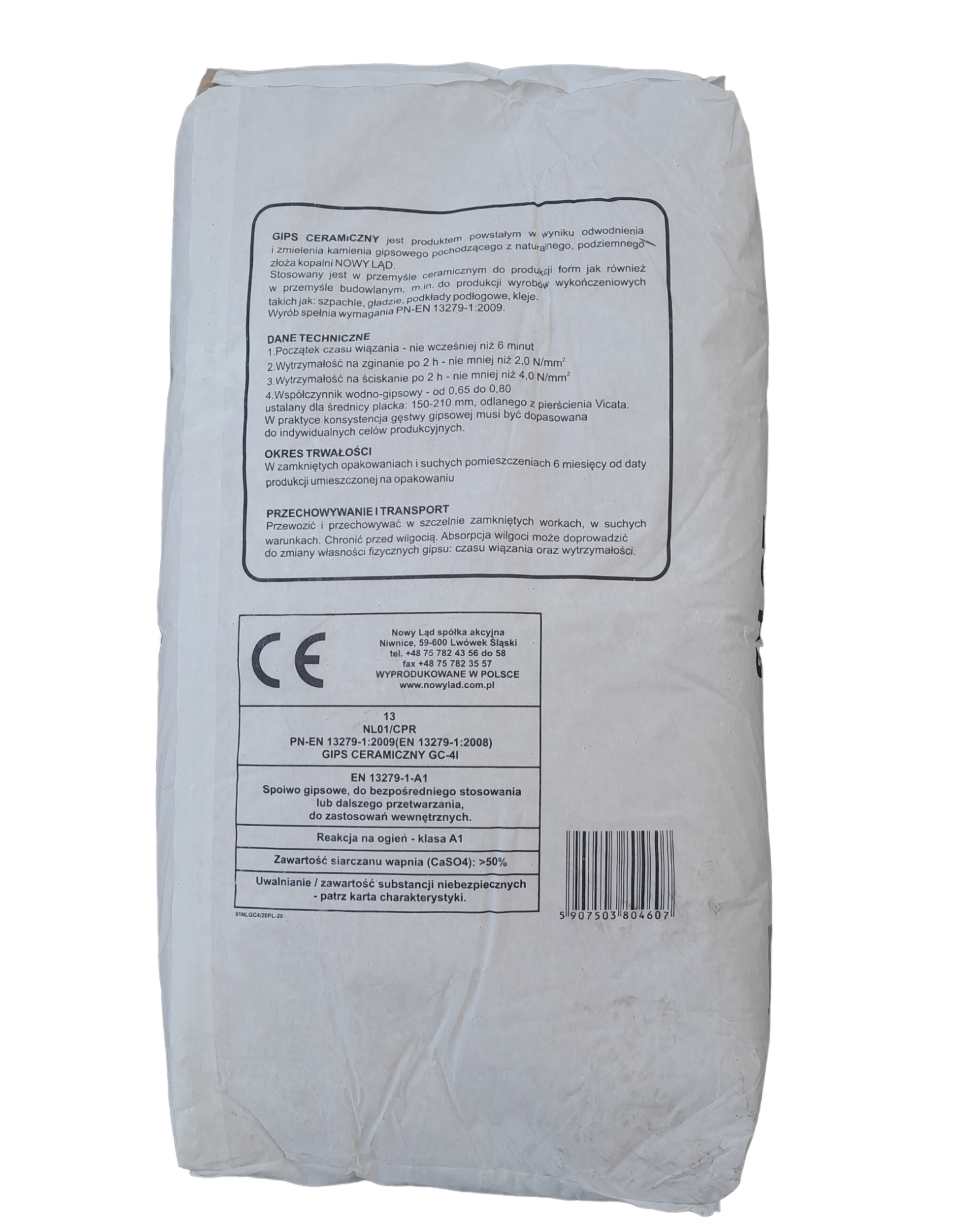 Głównym składnikiem jest półwodny siarczan wapniowy (Ca SO4x 1/2 H2O) odm. ß otrzymywany na skalę przemysłową przez częściowe odwodnienie kamienia gipsowego, pochodzącego z naturalnego złoża "Nowy Ląd".