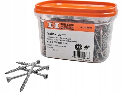 HECO WKRĘTY TARASOWE 4,2X55 200SZT ŁBE STOŻKOWY