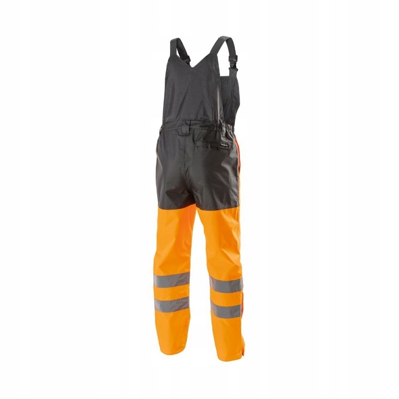 Męskie ogrodniczki ostrzegawcze przeciwdeszczowe wykonane z najwyższej jakości materiałów. Wyróżniają się lekkością i przepuszczalnością powietrza, zapewniają maksymalny komfort noszenia. Chronią przed deszczem (wodoodporność na poziomie 2000 mm H₂O) i wiatrem. Zwiększają bezpieczeństwo podczas przebywania w warunkach ograniczonej widoczności np. w trakcie przemieszczania w nocy oraz podczas złych warunków pogodowych np. w czasie deszczu lub mgły. Kolorystyka produktu jest skierowana do branż, w których pracownicy muszą być widoczni, między innymi do osób budujących drogi, ulice, rafinerie, pracujących w portach, na platformach wiertniczych, szybach wydobywczych, lotniskach czy w ratownictwie górskim.