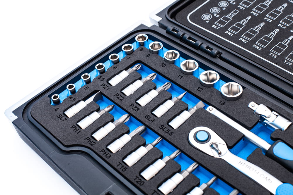 - Nasadki 1/4": 4, 4.5, 5, 5.5, 6, 7, 8, 9, 10, 11, 12, 13 mm