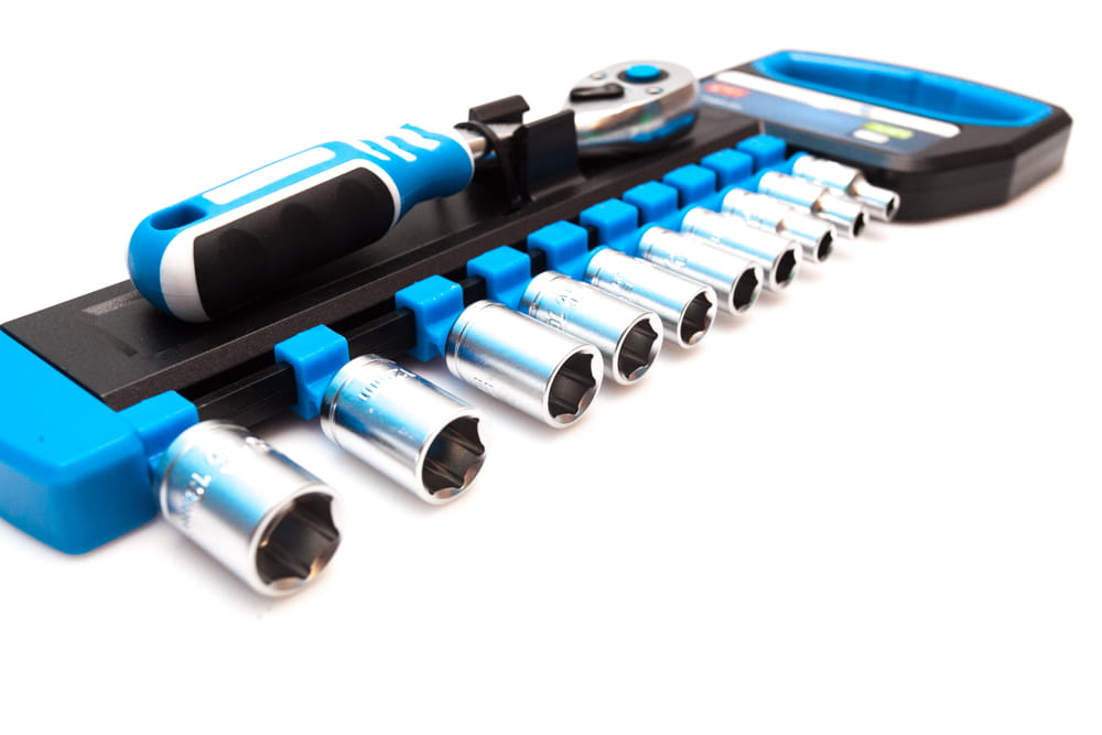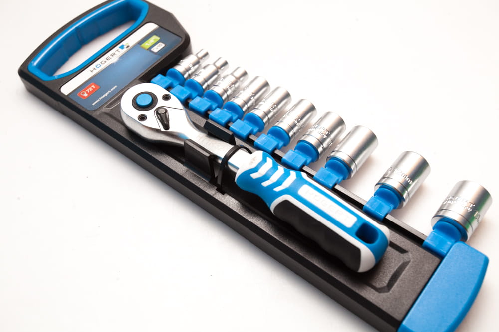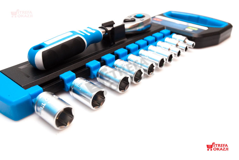 - w zestawie z nasadkami wykonanymi ze stali stopowej chromowo-wanadowej