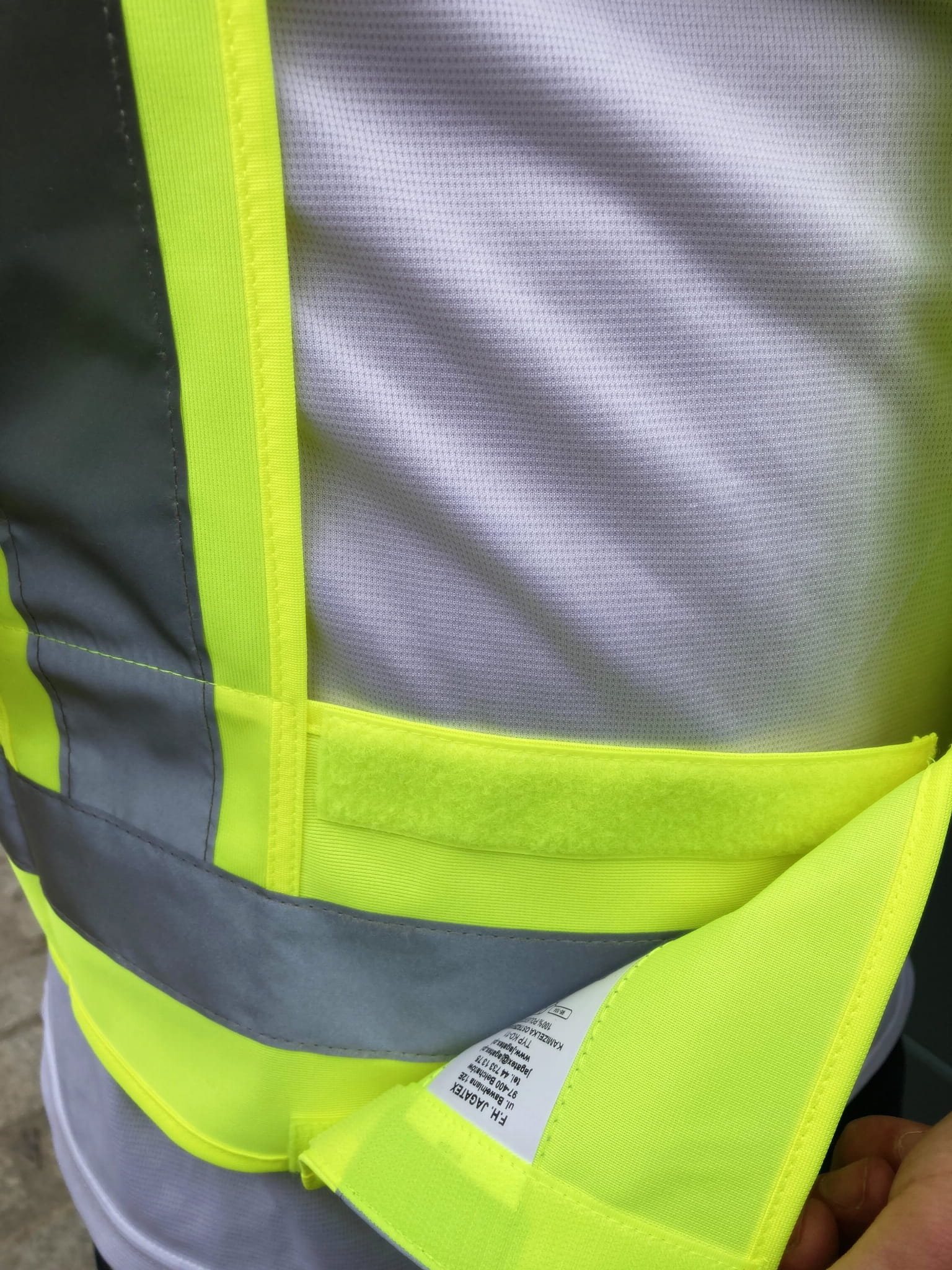 Produkt posiada znak CE - jest zgodny z normą PN-EN ISO 20471:2013-07, 1 klasa widzialności, czyli daje możliwość wizualnej sygnalizacji obecności użytkownika dla operatorów pojazdów lub innych urządzeń mechanicznych, w każdych warunkach oświetlenia, zarówno w świetle dziennym, jak i w ciemności przy oświetleniu przez reflektory pojazdu.
