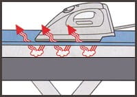 Zamieszczone w desce miejsce do odstawienia żelazka umożliwia sprawne i bezpieczne prasowanie,