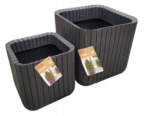 Doniczka Keter Cube Wood Planter duża antracytowa
