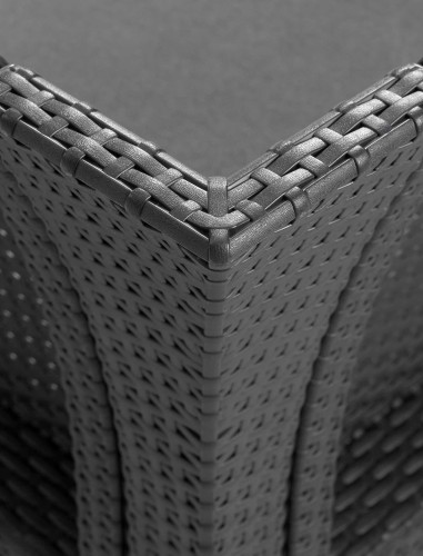 Struktura zestawu do złudzenia przypomina plecionkę rattanową, dopiero przy bliższym kontakcie z meblem widać, że jest to tworzywo sztuczne. Dzięki temu nie trzeba stosować specjalistycznych zabiegów konserwacyjnych. Wystarczy wilgotna ścierka z odrobiną delikatnego detergentu.