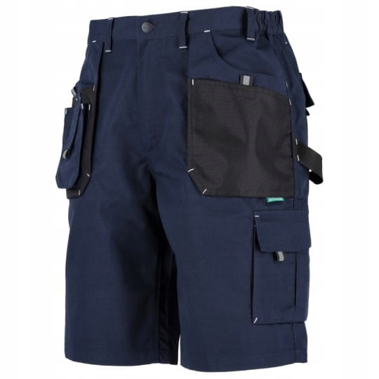 Krótkie szorty robocze zostały wyposażone w kilka kieszeni w newralgicznych miejscach. Posiadają dwie kieszenie po obu stronach nogawek, kolejne cztery miechowe umieszczono wokół pasa.