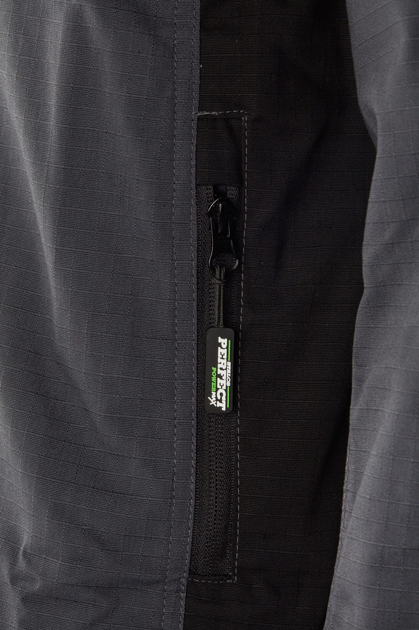 Wzmocnienia i kieszenie z tkaniny o podwyższonej wytrzymałości CORDURA, 2x duże, pojemne kieszenie na piersi, uchwyt na klucze.