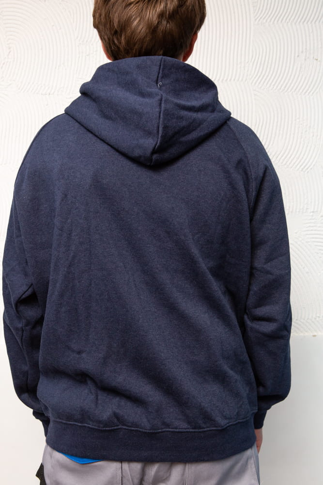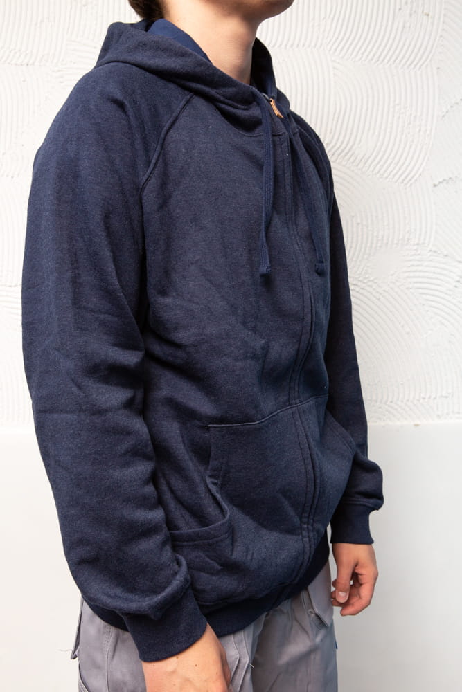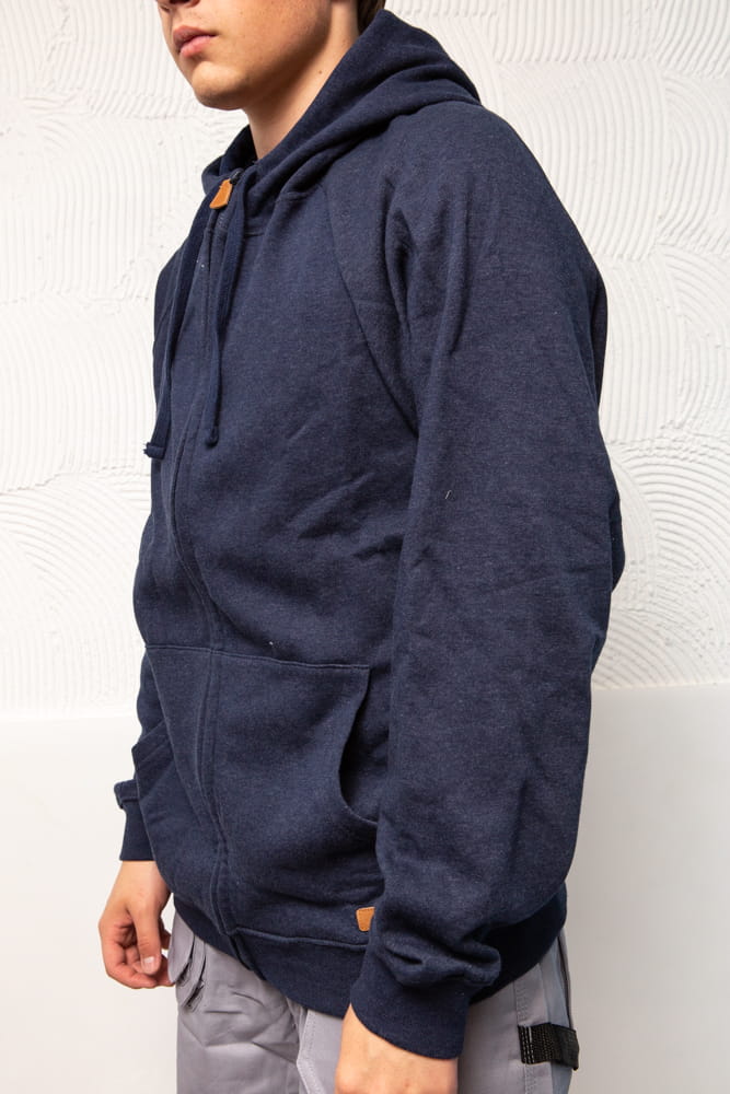 Nowa linia odzieży marki Lahti Pro L40112. Bluza robocza w kolorze granatowym wykonano z materiału o gramaturze 320g/m2. Skład materiału 60% bawełny, 35% poliestru oraz 5% wiskozy. Materiał jest bardzo miły w dotyku oraz ocieplany po wewnętrznej stronie. Bawełna typu ring-spun charakteryzuję się wysoką gęstością a jednocześnie miękkością i gładkością. Gwarantuje wytrzymałość i odporność na wycieranie oraz zapewnia komfort użytkowania. Praktyczny kaptur z bawełnianą podszewką i regulacja za pomocą troczków oraz wysoki kołnierz doskonale chronią przed zimnem i wiatrem. Bluza posiada dwie kieszenie. Mankiety oraz dół bluzy zakończone elastycznymi ściągaczami. Bluza posiadają deklarację CE oraz normę EN ISO 13688. Jest w pierwszej kategorii środków ochrony indywidualnej.