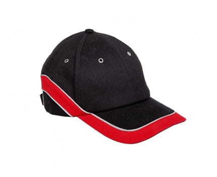 Czapki z daszkiem czarno-czerwone z elementami odblaskowymi