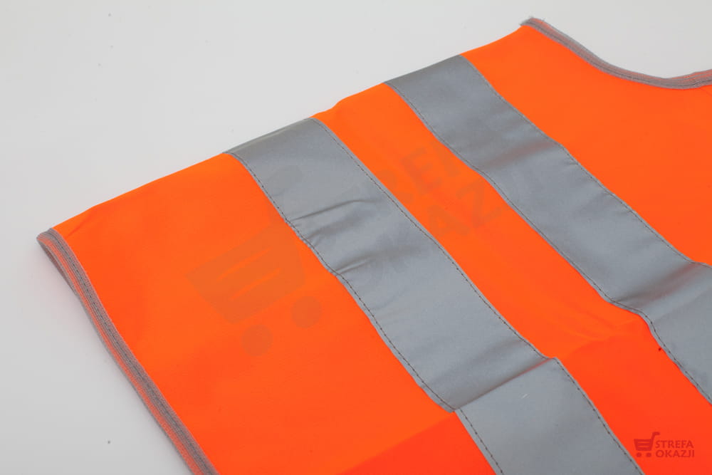 Kamizelkę odblaskową wykonano całkowicie z mocnego poliestru.