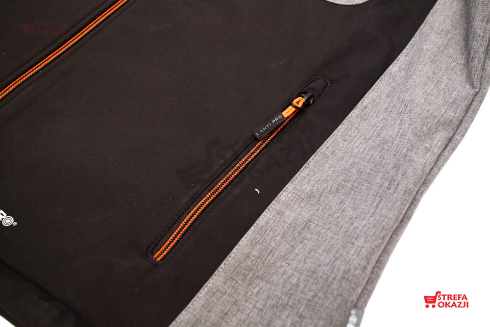 Nowość marki Lahti Pro. Kurtka męska softshell z kapturem model L40916. Kurtka wykonana z tkaniny typu softshell stu procentowego poliestru o gramaturze 310g/m2 na podszewce z micropolaru o gramaturze 160g/m2. Specjalna trój warstwowa tkanina softshell z membraną TPU o wodoodporności 8000mm i oddychalność na poziomie 3000g/m2/24h gwarantuje bardzo wysoki komfort użytkowania. Kurtka ma pięć kieszeni trzy zewnętrzne zamykane na suwak oraz dwie wewnętrzne. Kurtka posiada odpinany kaptur z możliwością regulacji szerokości. Dodatkowa osłona na suwak pod szyją oraz odblaskowe elementy sprawiają że kurtka ma bardzo fajny design oraz jest bardzo wygodna. Rękawy z regulacją na rzep. Szerokość dołu kurtki regulowana za pomocą specjalnego ściągacza. Kurtka posiada deklarację CE oraz normę EN ISO 13688. Jest w pierwszej kategorii środków ochrony indywidualnej.