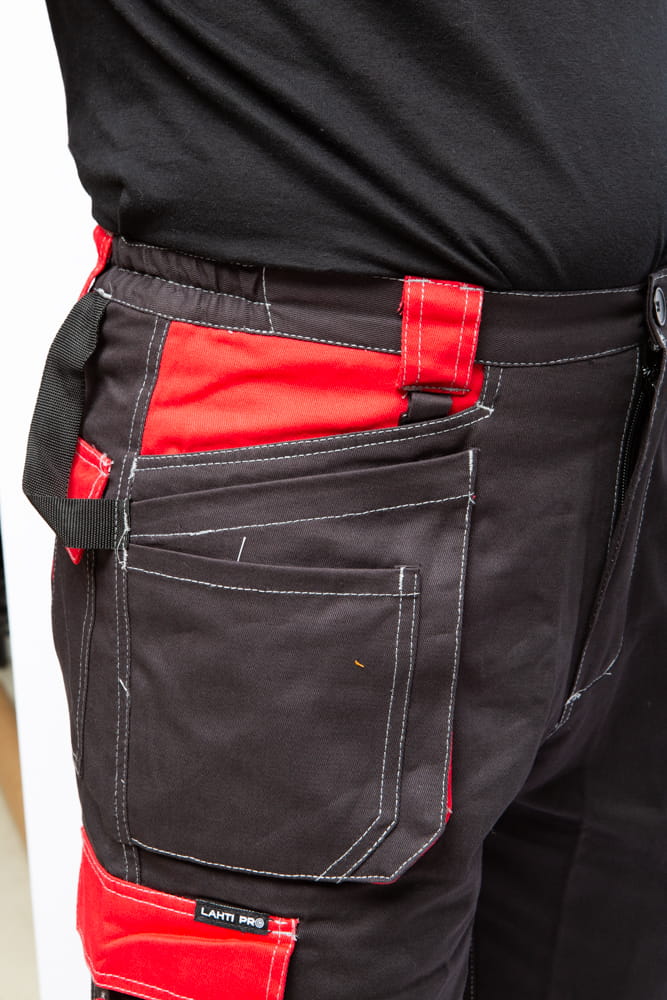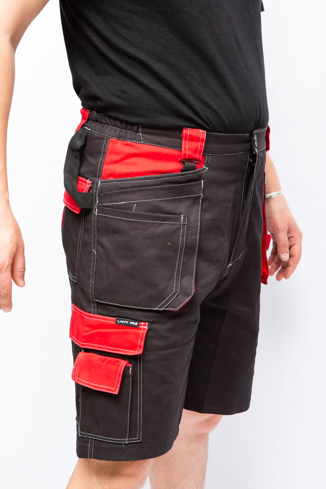 Nowa linia odzieży na lato marki Lahti Pro L40704. Spodenki robocze krótkie w kolorze czerwono czarnym wykonano ze 100% bawełny o gramaturze 245g/m2. Bardzo lekkie i przewiewne idealnie nadają się się do pracy w upalne i gorące dni. Spodenki posiadają sześć kieszeni w tym trzy zapinane na rzep, oczko na klucze oraz dodatkowo kieszeń na telefon komórkowy. Regulacja szerokości w pasie za pomocą gumki oraz wszywka identyfikacyjna. Mocne podwójne szwy. Spodenki posiadają certyfikat CE oraz normę EN ISO 13688. Są w pierwszej kategorii środków ochrony indywidualnej.