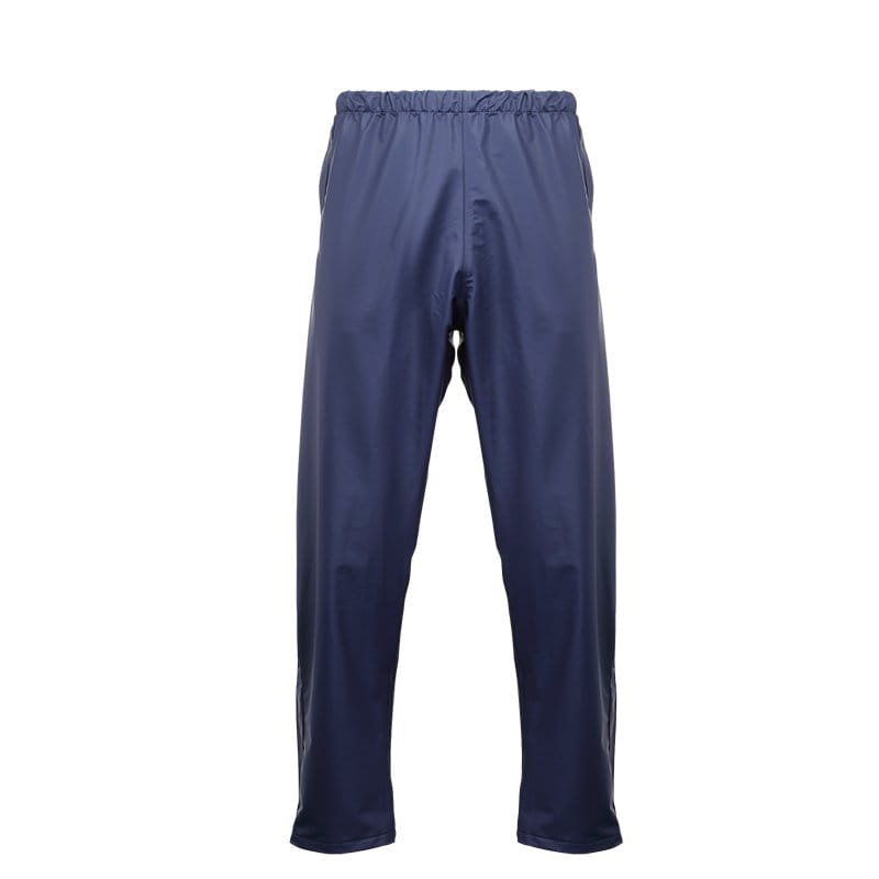 Spodnie przeciwdeszczowe marki Lahti Pro L41010 w kolorze granatowym wykonano z bardzo lekkiego i i odpornego na uszkodzenia mechaniczne stu procentowego poliuretanu. Spodnie są bardzo wygodne i lekkie w użytkowaniu. Regulacja w pasie za pomocą ściągacza pozwala idealnie dopasować spodnie do użytkownika. Dodatkowo regulacja szerokości nogawek za pomocą suwaka. Spodnie mają dwa otwory boczne umożliwiające dostęp do kieszeni. Odzież marki Lahti Pro posiada deklarację zgodności CE. Spodnie są w pierwszej kategorii środków ochrony indywidualnej oraz spełniają normę EN ISO 13688.