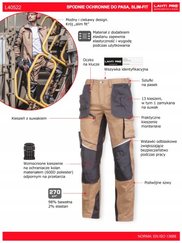 LAHTI PRO SPODNIE ROBOCZE BRĄZOWO-CZARNE SLIM L
