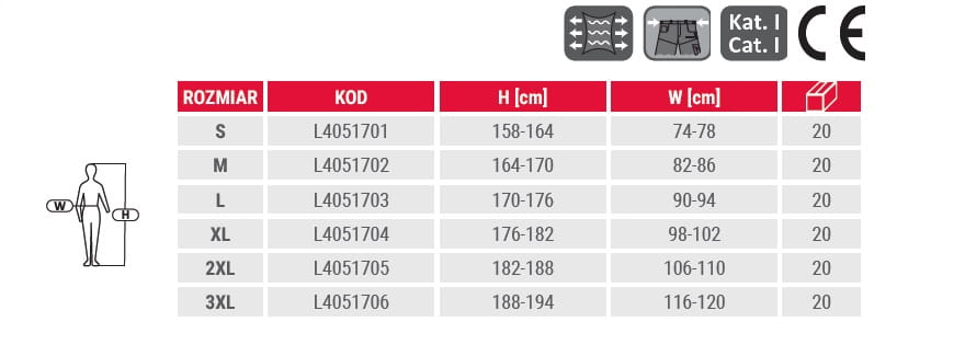 MATERIAŁ: 70% bawełna, 28% poliester, 2% elastan. 12 kieszeni, w tym 2 zapinane na nap. Kieszeń na telefon komórkowy zabezpieczona tkaniną odbijającą promieniowanie elektromagnetyczne. Materiał z dodatkiem stretchu zapewnia elastyczność i wygodę podczas użytkowania. Podwójne szwy. Dodatkowe wzmocnienie szwów w kroku. Innowacyjna regulacja szerokości w pasie za pomocą specjalnej konstrukcji z elastyczną taśmą. Oczko na klucze. Szlufka na młotek. Szlufki na pasek. Wzmocnione kieszenie oraz kieszenie na ochraniacze kolan materiałem (600D poliester) odpornym na przetarcia. Krój „slim fit”. Modny i ciekawy design. Wszywka identyfikacyjna. NORMA: EN ISO 13688
