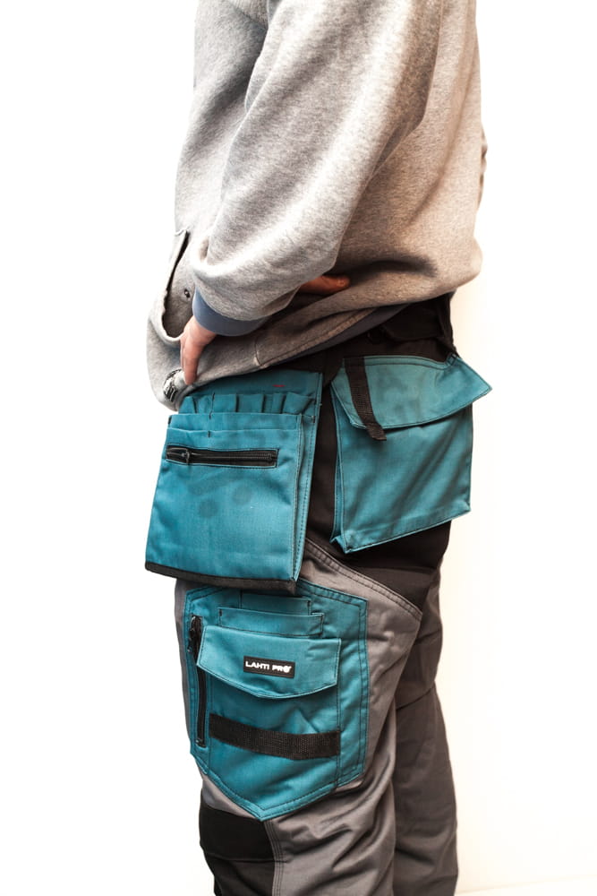 - Praktyczne kieszenie monterskie z możliwością regulacji i odpięcia