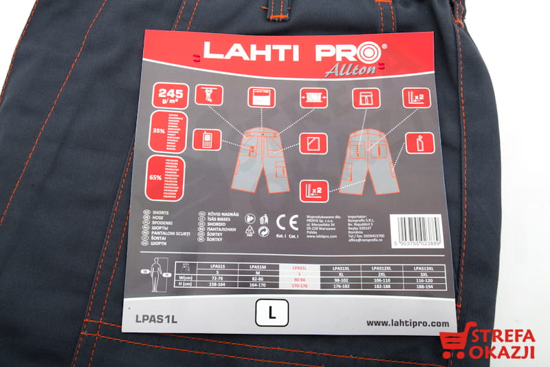 Spodenki ochronne do pasa posiadają wszywkę identyfikacyjną