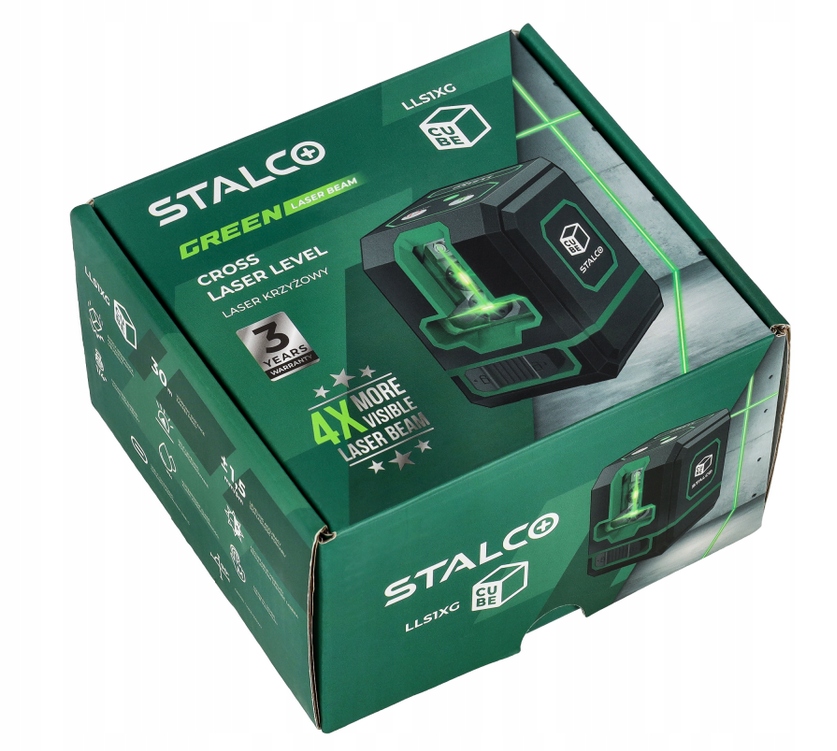 Model LLS1XG CUBE z linii Stalco to wyjątkowy laser krzyżowy, który łączy w sobie precyzję i wszechstronność, idealny dla profesjonalistów potrzebujących niezawodnego narzędzia do precyzyjnego poziomowania. Wyposażony w zieloną wiązkę laserową, zapewnia doskonałą widoczność nawet w jasnych warunkach oświetleniowych.