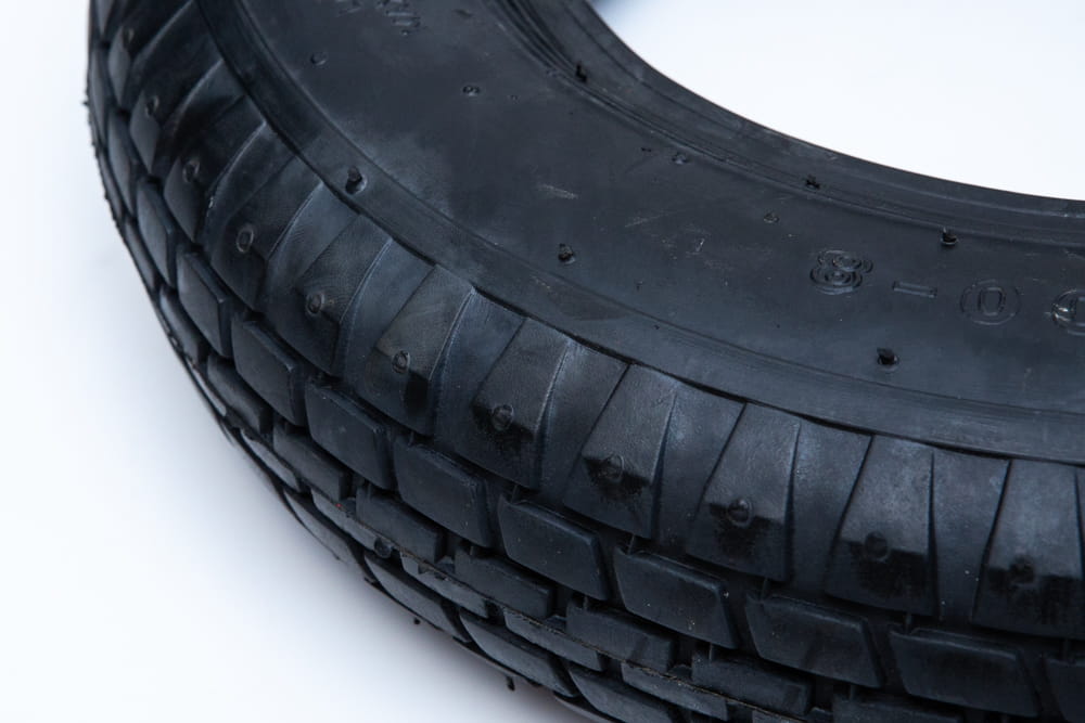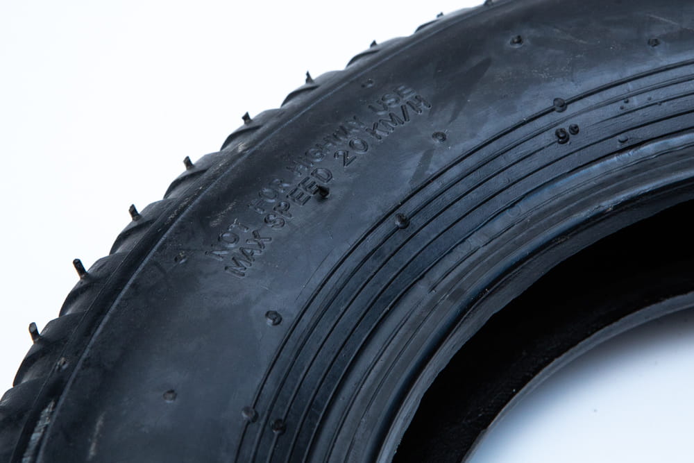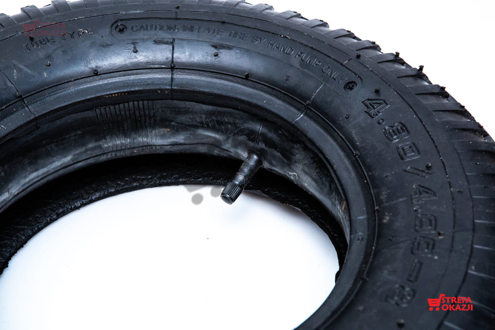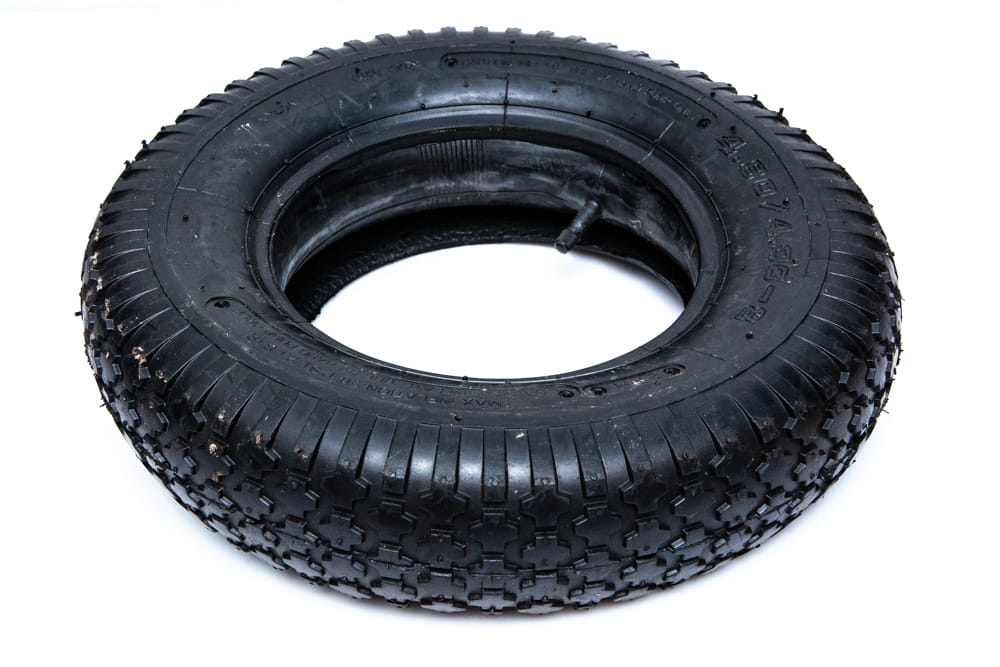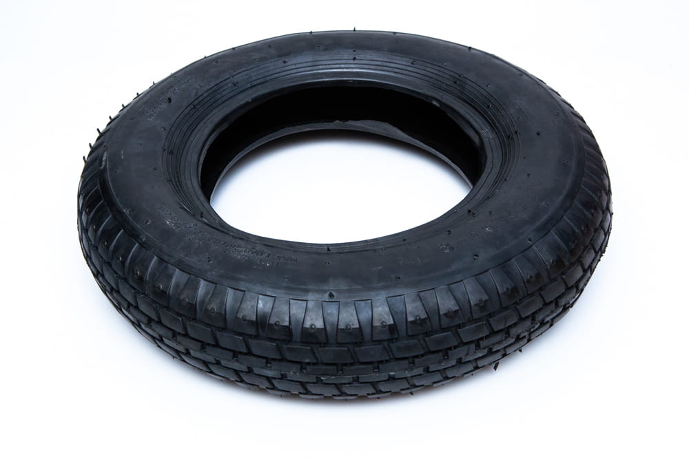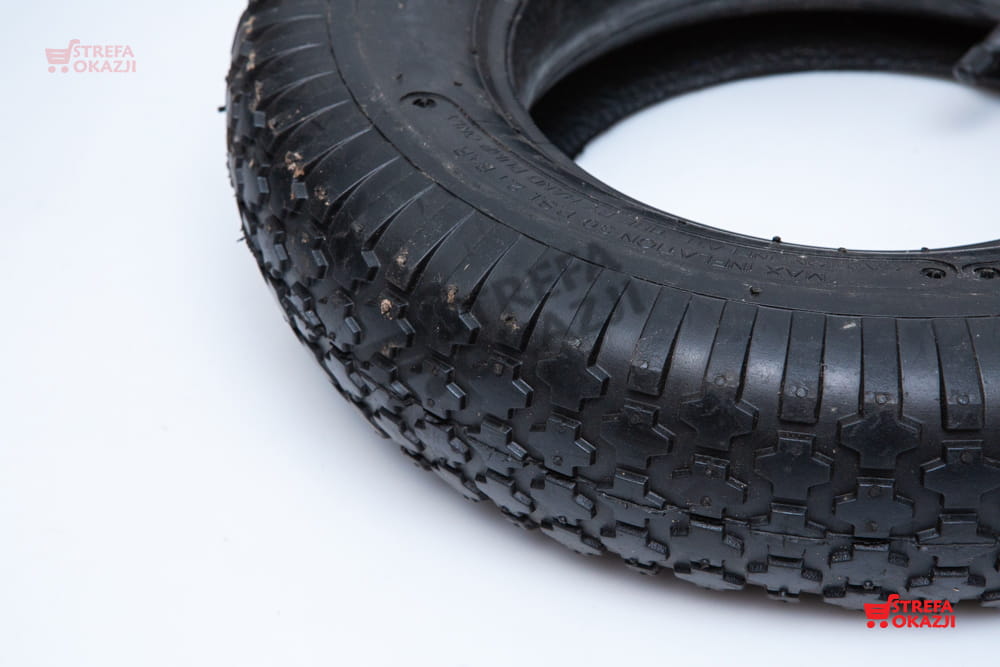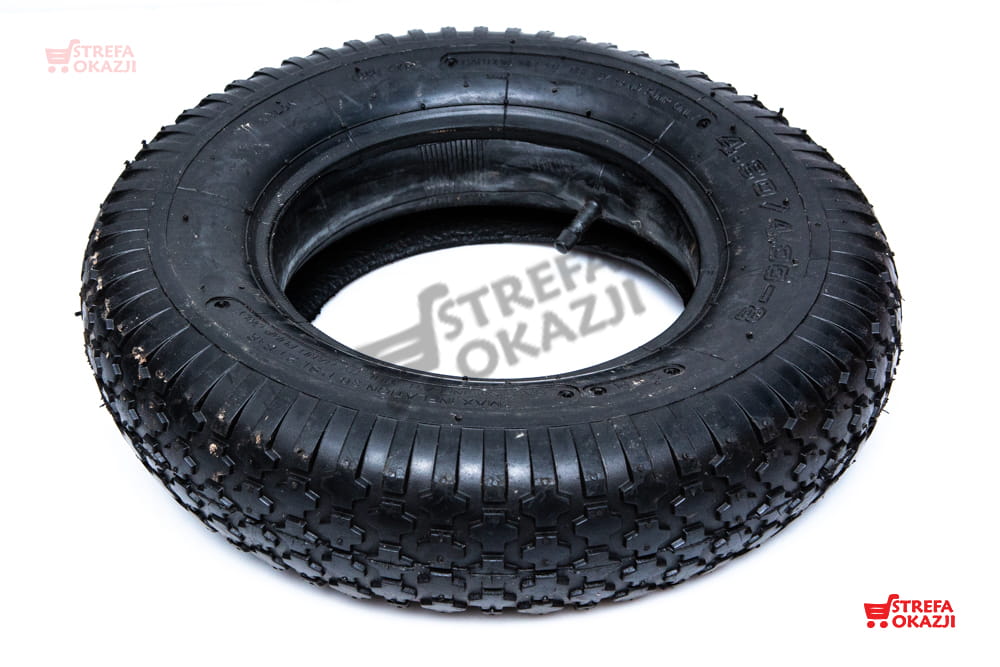 Standardowej jakości opona koła taczki o średnicy całkowitej 40cm. Produkcja azjatycka.